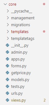 이런 과정을 거치다 보면 개발 폴더안에 프로젝트 폴더(DJANGO_PLOTLY)가 생기고 그 안에 앱 폴더(core)가 생긴다.